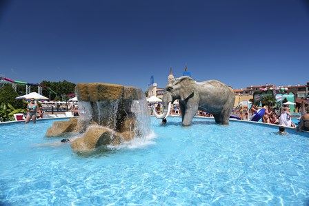 Екшън е най-зеленият аквапарк в България. Обвит в зеленината на тропически палми, кипариси и средиземноморски храсти паркът е единственият разполагащ със собствен Мини Зоопарк. Понастоящем паркът предлага над 30 водни атракции и забавления, някои от които са без аналог в страната. Любими на всички наши гости са анимационната програма, 330 метра дългата "Ленива Река", гейзерите и фонтаните, прекрасните зони за плаж, разходка и релаксация.